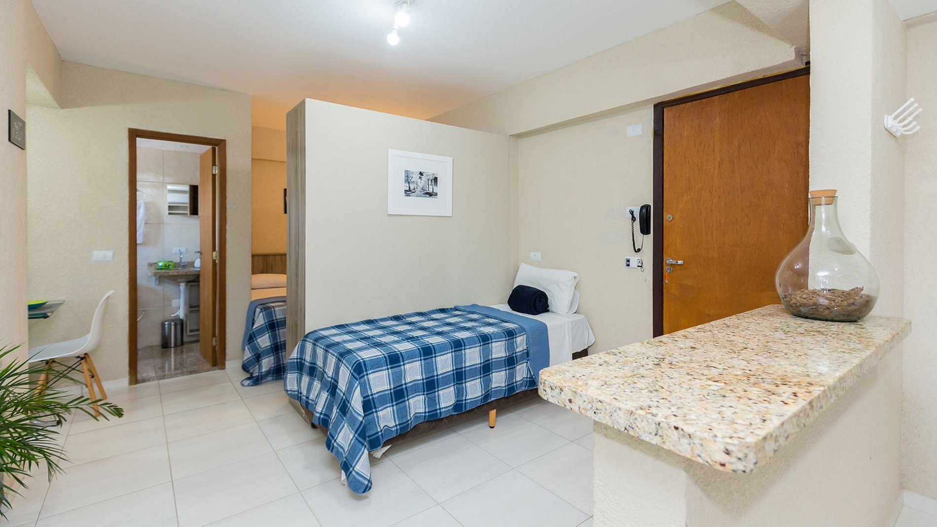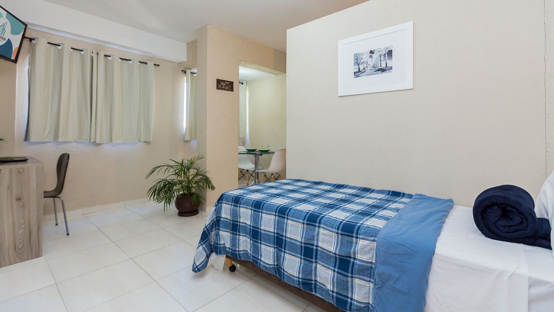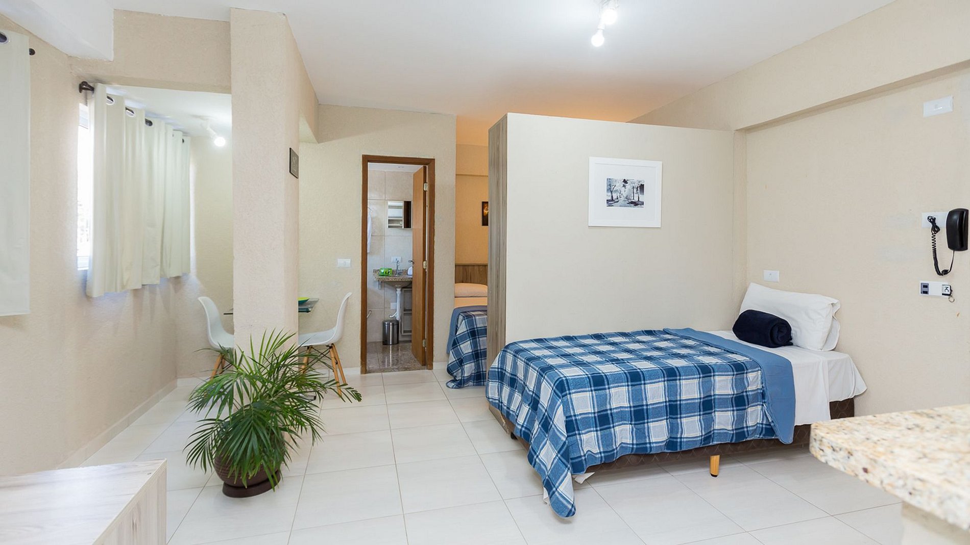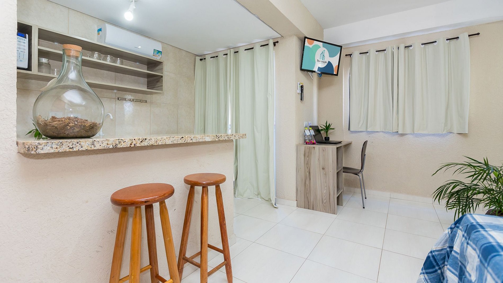 Nossos Estúdios são 100% residenciais, confortáveis com ar condicionado (quente e frio), TV Smart, internet de (fibra óptica), devidamente equipados/mobiliados com, armários, roupa de cama com edredons/manta, travesseiros, cama box casal (podendo transformá-la em duas de solteiro), enxoval de banho com, toalhas de rosto, banho e pé, e banheiro com box.