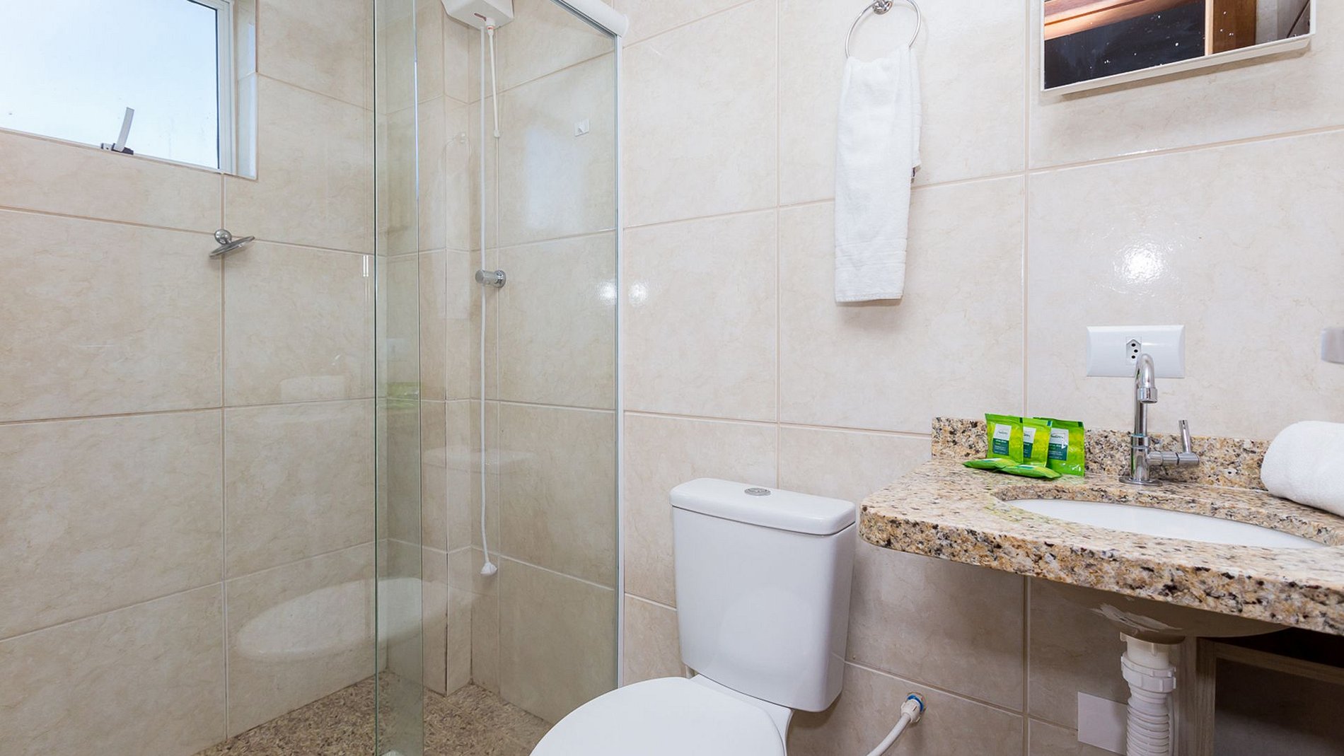 O usuário também poderá solicitar na recepção secador de cabelo e ferro de passar roupa.