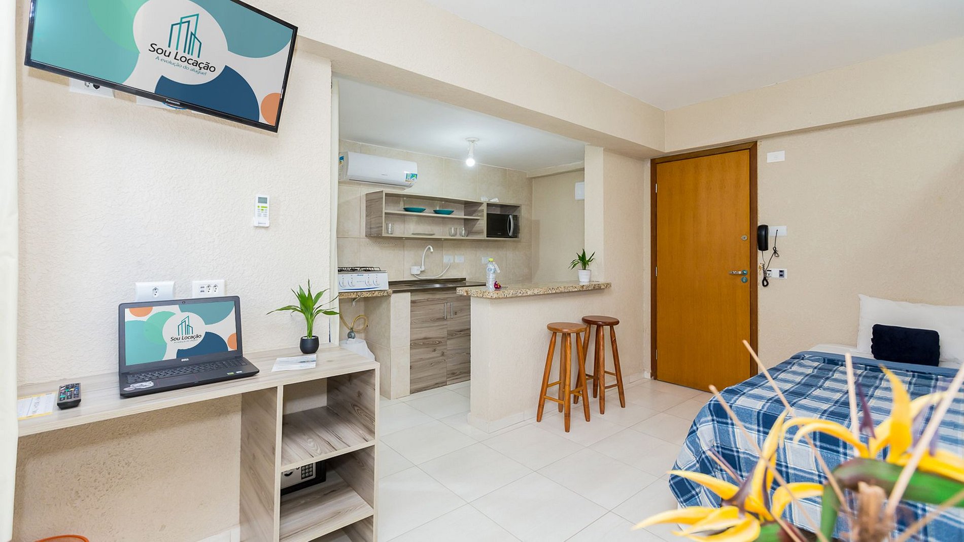 Nossos Estúdios são 100% residenciais, confortáveis com ar condicionado (quente e frio), TV Smart, internet de (fibra óptica), devidamente equipados/mobiliados com, armários, roupa de cama com edredons/manta, travesseiros, cama box casal (podendo transformá-la em duas de solteiro), enxoval de banho com, toalhas de rosto, banho e pé, e banheiro com box.