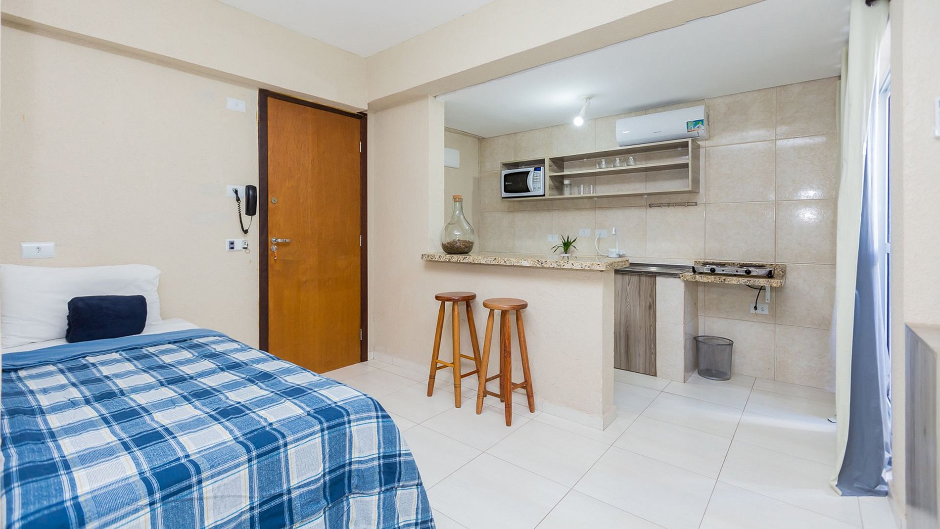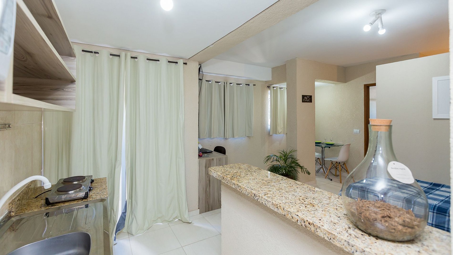 Unidade devidamente mobiliada, já com itens básicos de cozinha. Disponibilizamos todo o enxoval no ato do check-in e aceitamos várias formas de pagamento. Na recepção temos secador de cabelo e ferro de passar roupa. A partir de 5 diárias, o hóspede terá direito a uma limpeza adicional sem custo.
