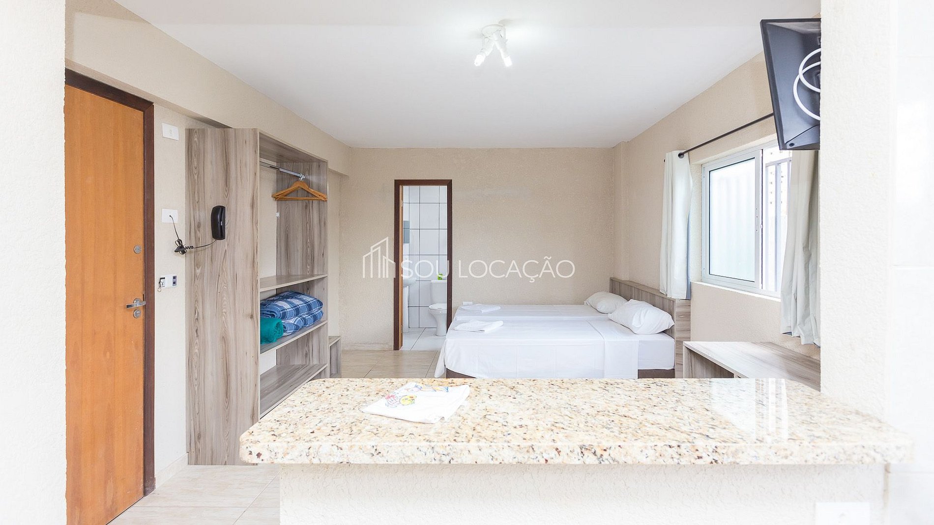 Nossos Estúdios são 100% residenciais, confortáveis com ar condicionado (quente e frio), TV Smart, internet de (fibra óptica), devidamente equipados/mobiliados com, armários, roupa de cama com edredons/manta, travesseiros, cama box casal (podendo transformá-la em duas de solteiro), enxoval de banho com, toalhas de rosto, banho e pé, e banheiro com box.